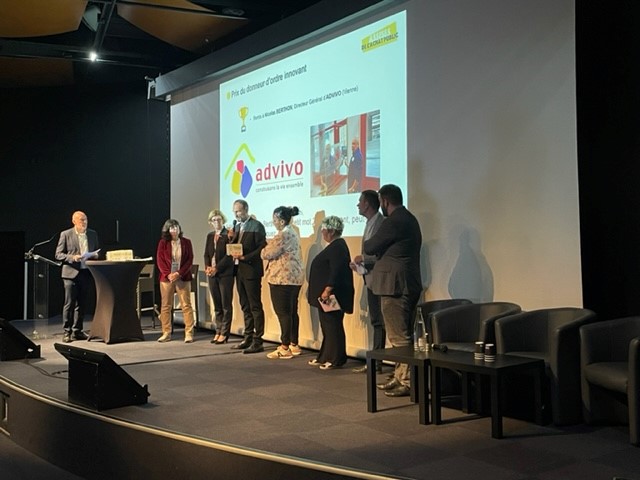 Nicolas Berthon, Directeur général de l’Office, Mai PHAM, Responsable juridique et marchés publics et MALIKA LAROUI, membre du conseil d’administration d’Advivo et Conseillère municipal déléguée et chargée de l’insertion, de la cohésion sociale et des centres sociaux à la MAIRIE DE VIENNE ont reçu le prix ce matin.