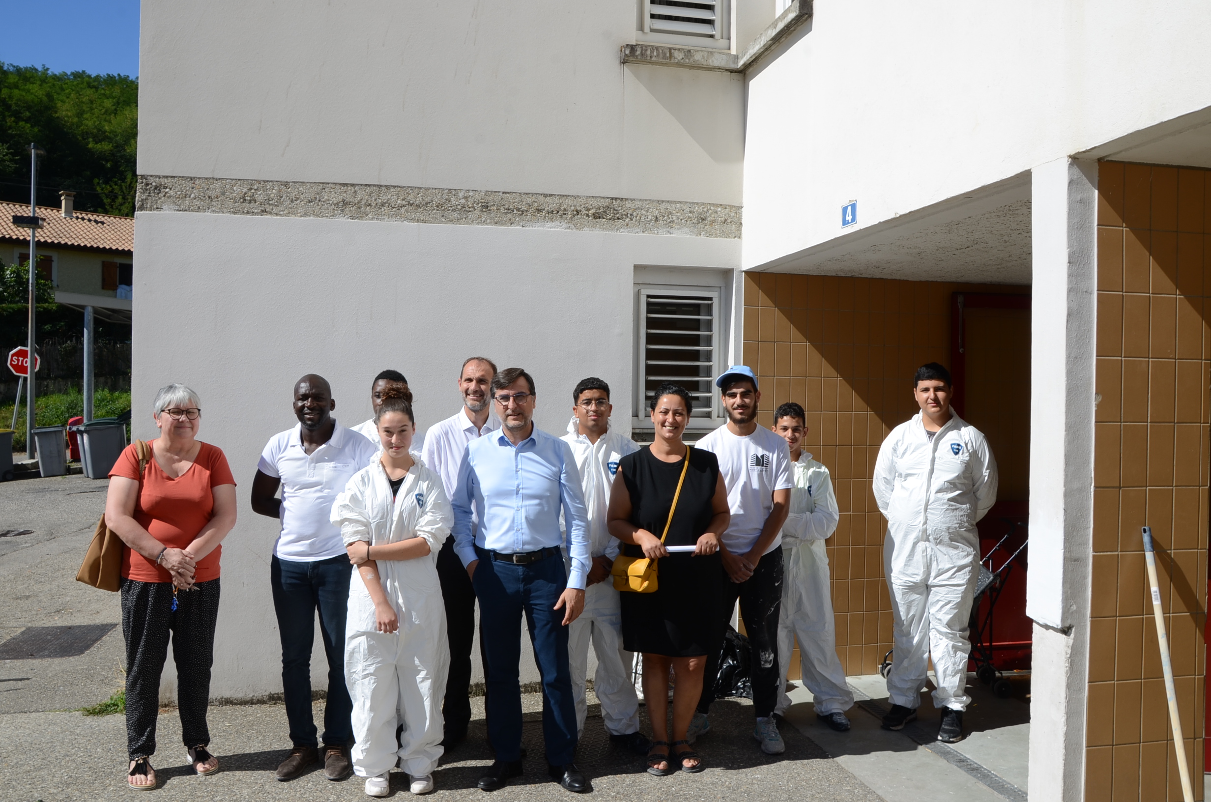 Thierry Kovacs, Président d’Advivo, Nicolas Berthon, Directeur Général et Moussa Tall, Responsable du Pôle technique de l’Office ont effectué ce matin, une visite sur les chantiers d’été actuellement en cours au sein de la résidence Cancane à Vienne.