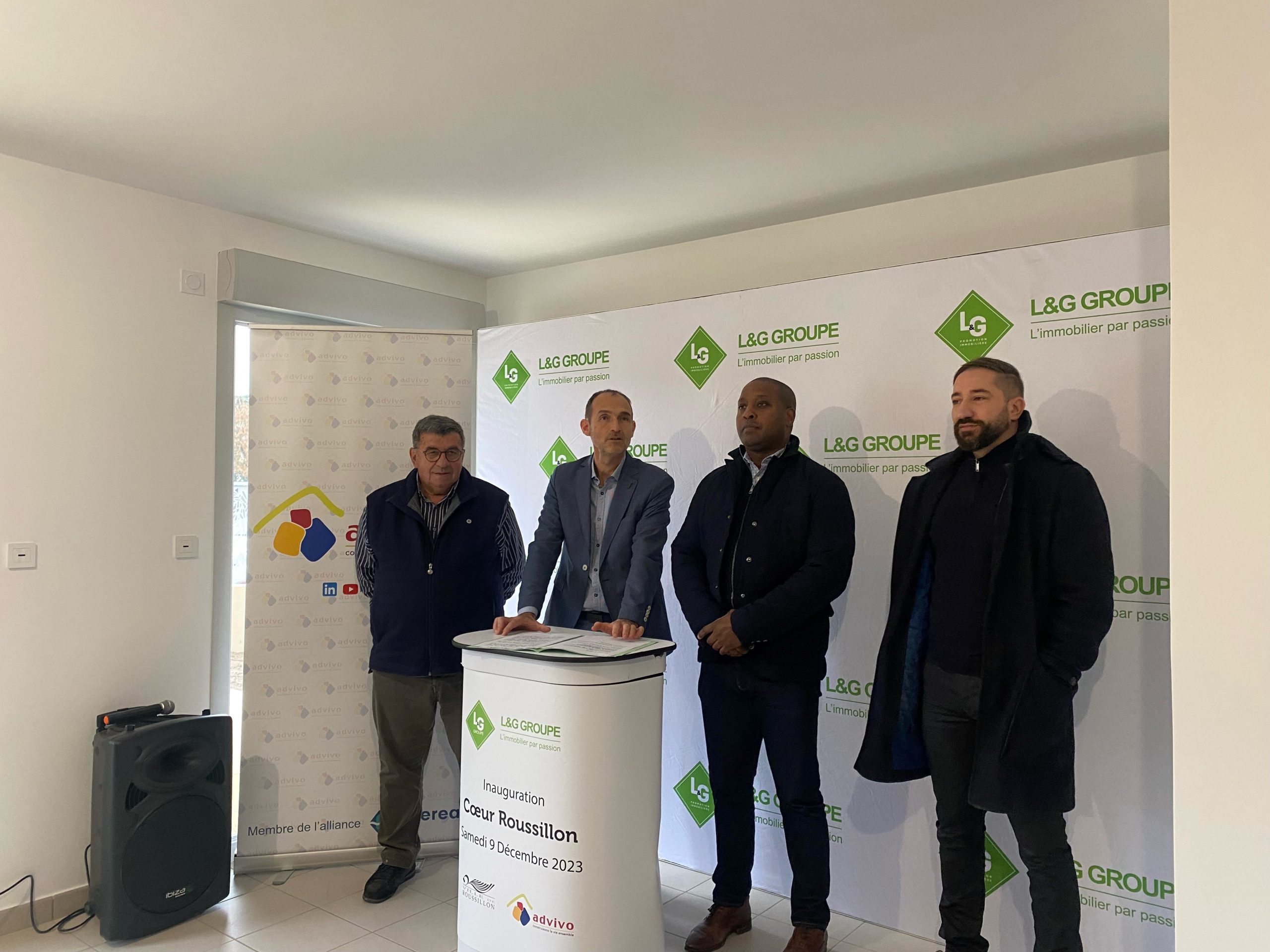 Samedi 9 décembre, Nicolas Berthon, Directeur Général d’Advivo, Jean Casanova, Directeur du patrimoine et du développement et Robert Duranton, Maire de Roussillon ont inauguré aux côtés du promoteur L&G Groupe, la résidence Coeur Roussillon.