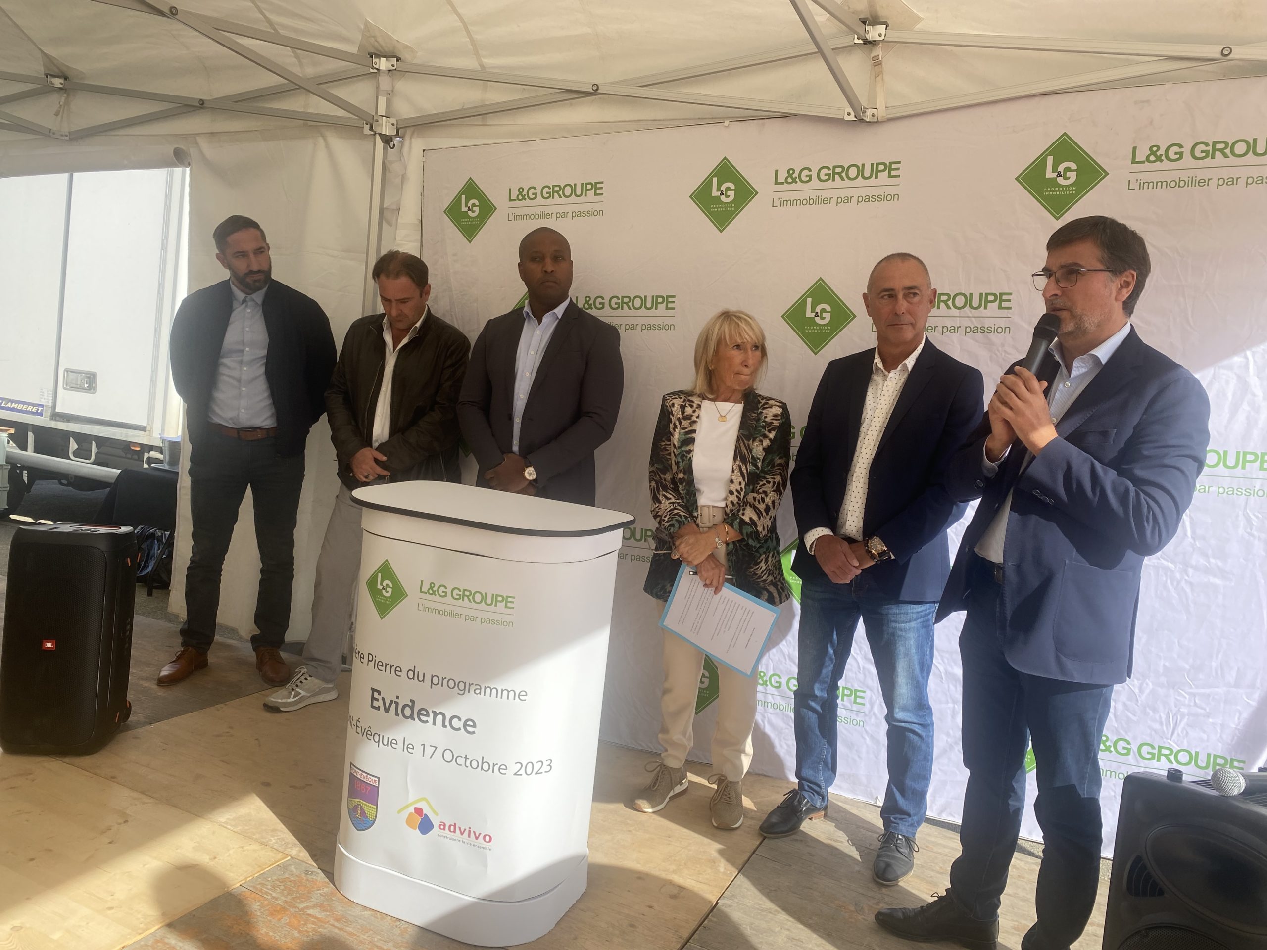 👉 Ce matin, Thierry Kovacs, Président d’Advivo, Office Public de l’Habitat, Nicolas Berthon, Directeur Général et Jean Casanova, Directeur du patrimoine et du développement ont participé aux côté de Martine Faita, Maire de Pont-Évêque, Jean-Pierre Bortoli, Architecte, Louis-Roland Leffe et Sébastien Ganozzi fondateurs de L&G Groupe à la pose de la première pierre de la résidence « Evidence » à Pont-Evêque.